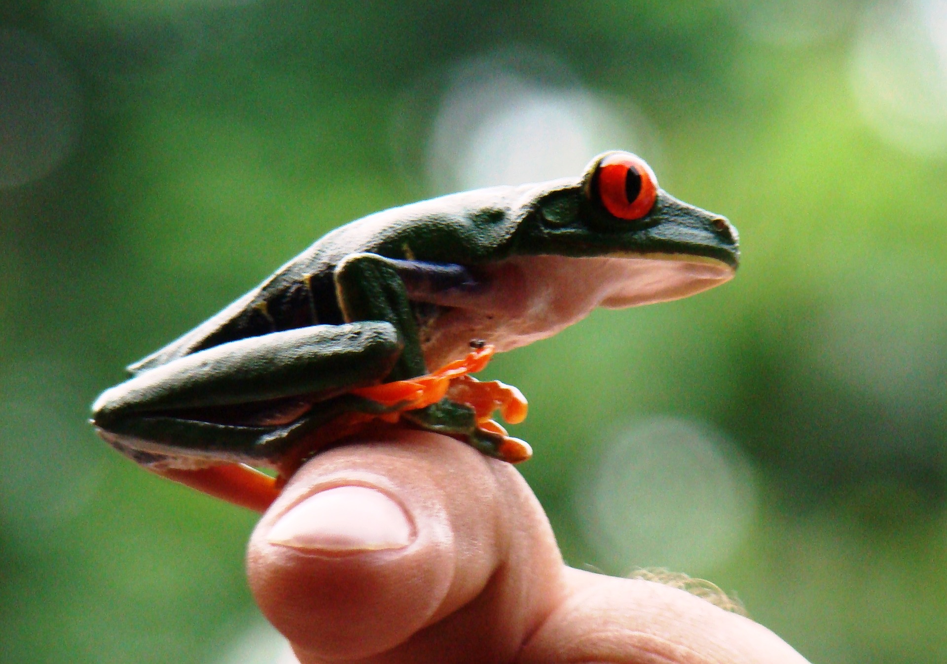 Der lateinische Name des Rotaugenlaubfroschs bedeutet übersetzt "leuchtend schöne Baumnymphe". Er spielt auf die auffällige, hübsche Färbung des Froschs an. Die leuchtende Farbe soll andere Tiere warnen. Denn mit ihr zeigen die bunten Hüpfer unmissverständlich: Vorsicht, wir sind giftig! Die Haut der Frösche enthält ein Gift, das Angreifer abhalten soll. Für Menschen ist das Gift aber nicht gefährlich. Rotaugenlaubfrösche sind perfekt an das Leben hoch oben in den Baumkronen angepasst.