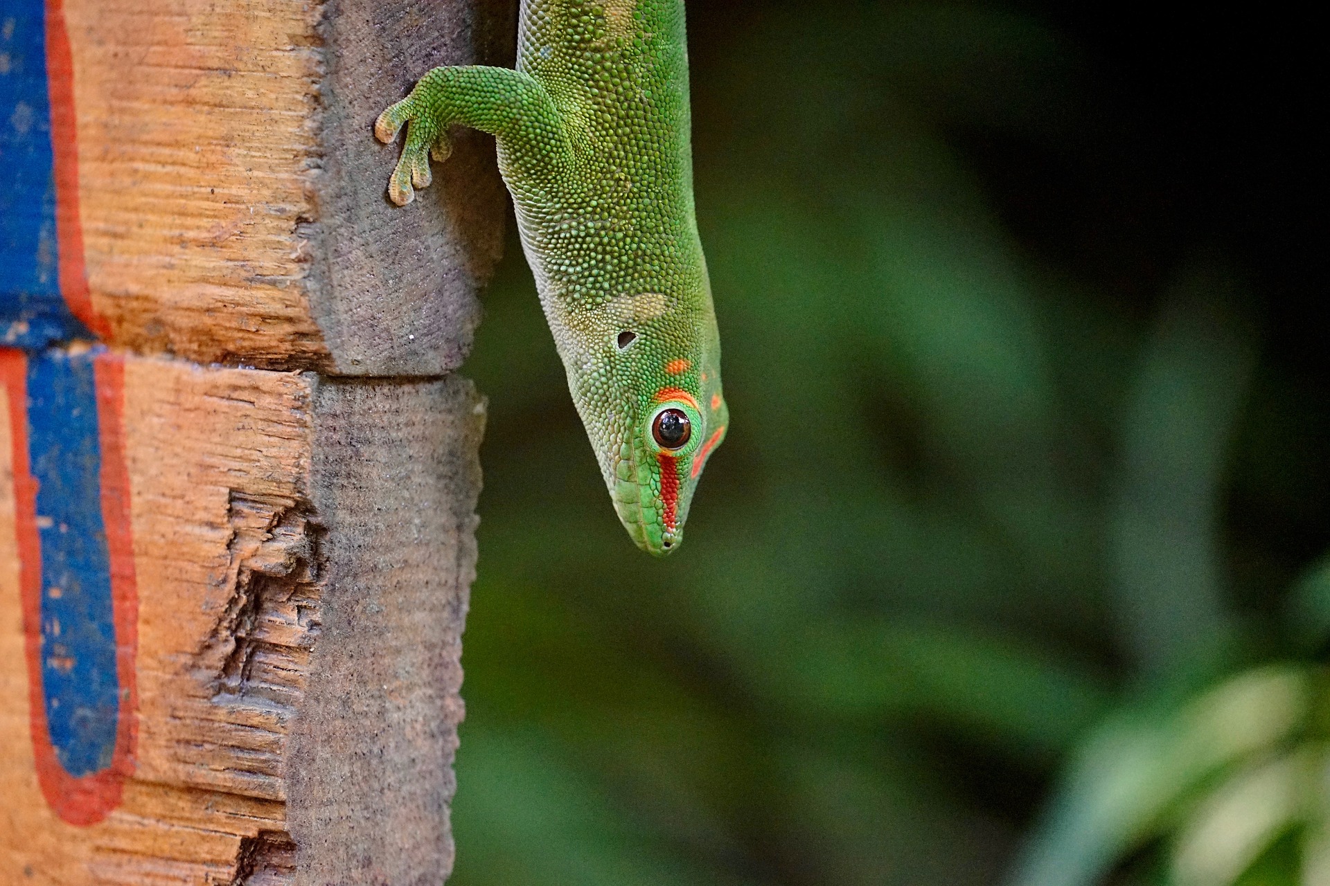 Trotz Tagaktivität verbringen Phelsumen nur eine kurze Zeit auf ihrem Sonnenplatz. Ansonsten halten sie sich in schattigen Bereichen auf.