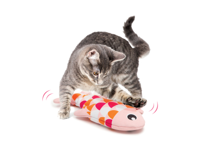 Der Fisch ist mit einem hochwertigen, weichen Bezug aus katzenfreundlichen Materialien ausgestattet. Sein niedliches grafisches Muster wurde mit umweltfreundlicher Technologie aufgedruckt und ist in 2 verschiedenen knalligen Farben erhältlich.