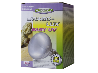 Der Drago Lux UV-Flächenstrahler Easy UV ist ein echtes Premium-Produkt für viel Wärme im Terrarium! Dafür sorgen unter anderem der große Rotlichtanteil, sowie die gleichmäßige Licht-, Wärme-, UVA- und UVB-Strahlung. Die Mischlicht-Lampe von Drago ist selbststartend und ohne Vorschaltgerät verwendbar und passt in jede Standard-E27-Fassung.