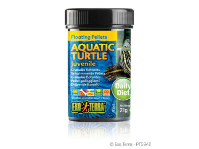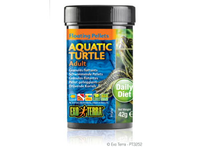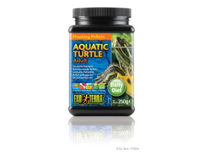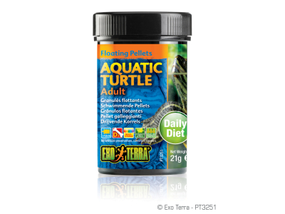 Exo Terra Aquatic Turtle Adult ist eine nahrhafte Pellet-Nahrung, angereichert mit Gammarus-Garnelen, Mineralstoffen, Multi-Vitaminen. Exo Terra Aquatic Turtle Adult versorgt alle erwachsenen Wasser- und Sumpfschildkröten mit zahlreichen Nährstoffen wie Vitaminen, Kalzium (verschiedener Quellen), hochqualitativem Protein und mehr. Diese qualitativ hochwertigen, extrudierten, schwimmenden Pellets unterstützen die Ausbildung eines harten Panzers der Schildkröten durch sowohl natürliche als auch ergänzte Kalziumquellen. Gleichzeitig enthaltenes Vitamin D3 ist unerlässlich für eine funktionierende Aufnahme des Kalziums aus der Nahrung. Diese extrem wohlschmeckenden schwimmenden Pellets bieten eine qualitativ hochwertige Ernährung. Exo Terra Aquatic Turtle Adult enthält „hochentwickelte Hefeextrakte“, welche dabei helfen, eine gesunde Verdauung zu unterstützten.