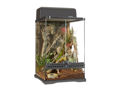 Das Exo Terra® Azteken-Terrarium bildet die Basis unserer Azteken-Habitate für Reptilien. Die Rückwand ist einem aztekischen Steinrelief nachempfunden und legt den Grundstein einer mystischen mesoamerikanischen Terrarienlandschaft.