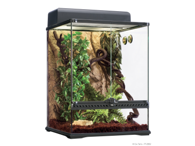 Das Exo Terra Terrarienset „Regenwald“ ist ideal für alle Neulinge auf dem Gebiet der Herpetokultur! Das Set ist mit allen Teilen ausgestattet, die Sie benötigen, um Ihr Terrarienhobby erfolgreich zu beginnen - darunter das von europäischen Herpetologen konstruierte Exo Terra Glasterrarium. Das Exo Terra Glasterrarium hat zwei nach vorne hin öffnende Türen, die einen leichten Zugang zur Wartung und Fütterung bieten. Durch das Top aus feinmaschigem Metallgewebe zur guten Durchlüftung können die UVB-Strahlen von der kompakten Terrarienlampe bis tief in das Terrarium gelangen. Die Exo Terra Compact Top Abdeckung (enthalten) wurde speziell für das Exo Terra Glasterrarium konzipiert. Dieses einfach zu installierende Beleuchtungssystem enthält eine Halterung mit einem Reflektor für die kompakten Exo Terra Repti Glo Terrarienlampen.