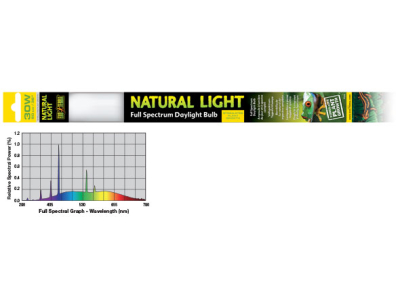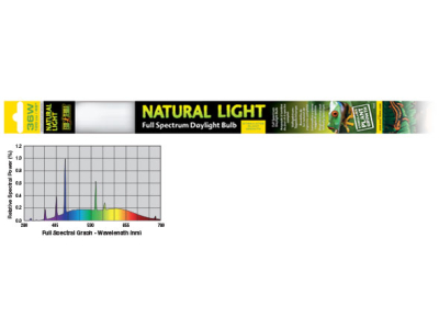 Die Exo Terra Natural Light ist eine Vollspektrum-Tageslichtlampe, die als allgemeine Lichtquelle für alle Terrarienarten geeignet ist. Dank der von der Exo Terra Natural Light ausgestoßenen Wellenlängen können die Reptilien die Farben ihrer Umgebung natürlicher erleben und wahrnehmen. Die Exo Terra Natural Light trägt dazu bei, die Lebensbedingungen und das physiologische Wohlbefinden Ihrer Reptilien zu verbessern.