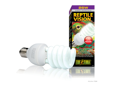 Die Augen von Reptilien sind sensible für andere Wellenlängen im Lichtspektrum als die Augen von uns Menschen. Bisher wurden Lampen für das menschliche Auge entwickelt. Das Spektrum der Reptile Vision Lampe zielt auf die Wellenlängen ab, die für Reptilien wichtig sind. Infolge dessen erkennen Reptilien ein helleres Licht und nehmen Farben und daher ihre Umwelt natürlicher wahr. Die Exo Terra Reptile Vision Lampe trägt dazu bei, die Lebensbedingungen und das physiologische Wohlbefinden Ihrer Reptilien zu verbessern.