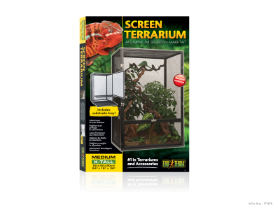 Das Exo Terra Gaze-Terrarium ist der perfekte Lebensraum für auf Bäumen lebende Reptilien und Amphibien, die sensibel auf stehende Luft reagieren. Der frei fließende Luftstrom sorgt für eine optimale Durchlüftung und minimiert so Gerüche und Pilzbefall im Lebensraum Ihrer Reptilien. Die Gazekonstruktion bietet größere Temperaturgefälle. Dies hilft Ihren Reptilien, ihre Körpertemperatur effektiver zu regulieren und eine Überhitzung zu verhindern. Die Aluminiumgaze ermöglicht es ultravioletten Strahlen von UVB-Lampen oder der Sonne tief ins Innere des Terrariums zu dringen. In die Substratwanne können Sie dünne Schichten Substrat geben, um Spritzwasser zu absorbieren und die Luftfeuchtigkeit zu erhöhen. Die Substratwanne kann durch die aufklappbare Bodentür einfach herausgenommen werden. Die widerstandsfähigen vernickelten Riegel geben dem Terrarium zusätzliche Stabilität und verwahren Ihre Reptilien sicher im Inneren des Terrariums. Geben Sie eine Exo Terra Rückwand (optional) in das Terrarium, um die Luftfeuchtigkeit zu erhöhen und um Sprühnebelwasser für Arten aufzufangen, die lieber Wassertröpfchen auflecken, wie beispielsweise Chamäleons, Taggeckos und viele andere auf Bäumen lebende Arten. Das Gaze-Terrarium kann einfach mit einem Schraubendreher aufgebaut werden.
