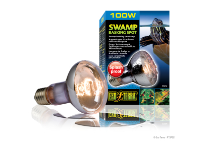 Die Exo Terra Swamp Basking Spot ist eine gegen Spritzwasser & Sprühregen unempfindliche Wärmelampe, die für alle Aqua-Terrarien oder Terrarien mit extrem feuchten Bedingungen geeignet ist, in denen die hohe Luftfeuchtigkeit oder versehentliche Wasserspritzer herkömmliche Wärmelampen beschädigen könnten. Die äußere Hülse besteht aus Neodym-Einscheibenglas.