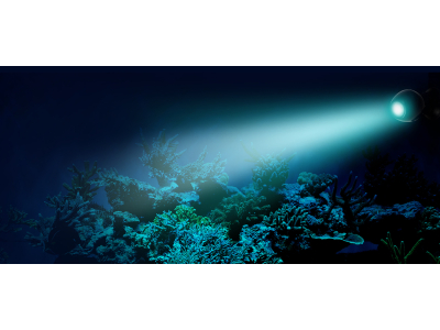 Die jüngste Generation der Prism Beleuchtung strahlt einen starken 6,5-Watt-Lichtstrahl aus, der das Licht bis zu 1,8 Meter unter Wasser projizieren kann.