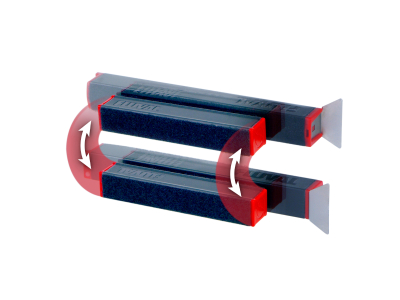 Die extra langen Seiten sind besonders für großflächige Bereiche geeignet, während die gewinkelte Klinge selbst an schwer erreichbare Flächen herankommt.