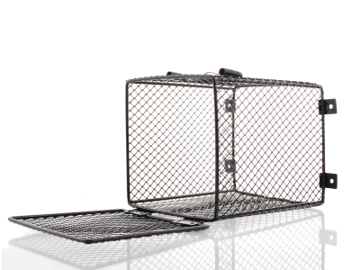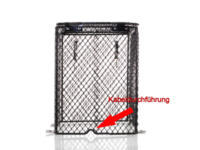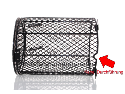 Unser Lampenschutzkorb ist mit vier Befestigungshaken ausgestattet, mit denen er direkt an der Decke des Terrariums befestigt werden kann. Zusätzlich verfügt er über eine Kabeldurchführung, für eine leichtere Verlegung des Stromkabels. Über den Deckel, der mit einem zusätzlichen Federverschluss gesichert ist, können Sie das Leuchtmittel bei unserem Lampenschutzkorb trotz Absicherung mit Leichtigkeit wechseln. Erhältlich ist unser Lampenschutzkorb in eckiger sowie runder Form. So finden Sie für jede Lampenfassung die passende Absicherung.