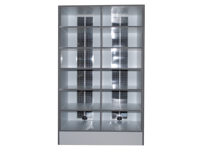 Eine weitere und wichtige Eigenschaft der Kunststoffracks, ist der Sockel von ca. 10cm im unteren Bereich des Racks, es entsteht eine weitere Wärmeisolationsschicht, da das Rack nicht direkt auf dem Boden steht, sowie kann dort ein Thermostat z.B. das TMC-200 verbaut werden, wodurch keine störenden oder sichtbaren Kabel aus dem Rack schauen.