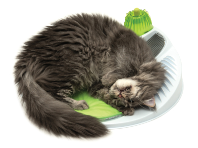 Die Fellpflege gehört zu den Lieblingsbeschäftigungen unserer Samtpfoten. Um sie dabei zu unterstützen, bietet das Wellness Center zwei robuste und zugleich flexible Bürsten, mit denen sich lose und ausgefallene Haare entfernen und aufnehmen lassen.