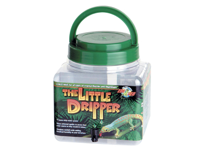 Zoo Med´s Dripper ist eine Tropftränke für Reptilien und erhöhen die Luftfeuchtigkeit im Terrarium. Der Dripper hat eine einstellbare Tropfgeschwindigkeit und sollte außerhalb des Terrariums angebracht werden. Der Dripper ist speziell für Tiere die Flüssigkeit größtenteils nur über fließendes oder tropfendes Wasser aufnehmen, z.B. Chamäleons.