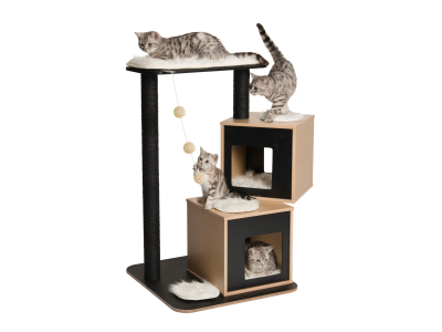 Als großer Bruder von V-Base ist der V-Double mit seinen Zwillingshöhlen ideal für 2 oder mehr Katzen geeignet. Die vielen Ebenen laden zum Verweilen ein, bieten aber auch die Möglichkeit zum Klettern, Springen und Spielen.