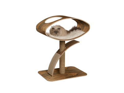 Futuristisch elegant. So beschreibt man am besten die außergewöhnliche Form von V-High Lounge. Dieses moderne Katzenmöbel aus Pappelholz ist einzigartiger Aussichtspunkt und Ruheplatz in einem.